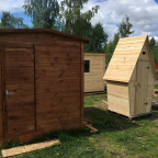 При этом точность расчета проверяется с помощью рулетки. Затем прибивают вертикальные бруски. Следует отметить тот факт, что если Вы за выходные не успели доделать до конца туалетную (или душевую кабину), то бруски следует промазать специальным составом или краской. Делается это для того, чтобы не появлялся на поверхности древесины грибок в виде плесени. После того как каркас готов, можно будет уже обивать его. Но перед этим следует убедиться еще раз, что он сделан не криво. Это можно проверить с помощью отвеса, а также чтоб за этим следил некто третий со стороны (этим "третьим" может быть и женщина). Для этого, чтоб он (она) отходили вбок по правую или левую сторону от будущего входа в туалет (или иное помещение) и смотрели вдоль воображаемой линии (плоскости), проходящей через три вертикальных бруска (как на фронтальной, так и на задней стороне). Если все три бруса лежат на одной плоскости (для обеих сторон), то дело идет хорошо и можно прибивать саму вагонку. Если же хотя бы на одной стороне бруски "не лежат на одной плоскости", то выясняйте причину этого и устраняйте. Для этого надо будет обрезать нужный брусок.